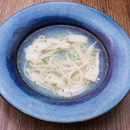 1,390₸Куриный бульон, куриное филе, лапша рисовая, сырная тапиоковая палочка, зелень.В корзину -