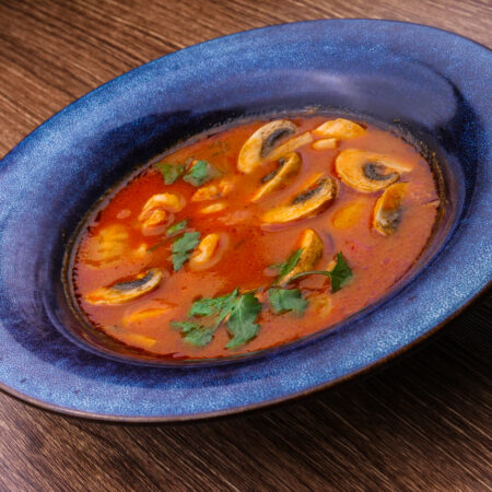 3,690₸Креветки, черри, шампиньоны, сельдерей, рис, кокосовое молоко, сливки, том ям паста, креветочный биск.В корзину