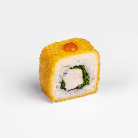 1,800₸Филе цыплёнка, лист салата, зеленый лук, соус спайси, темпура, сухари панко, нори.В корзину -