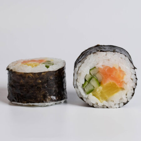 1,350₸ – 2,490₸Лосось, огурец, такуан, нори.Выберите параметры Этот товар имеет несколько вариаций. Опции можно выбрать на странице товара. -