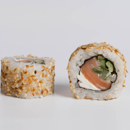 1,350₸ – 2,490₸Лосось холодного копчения, сливочный сыр, огурец, кунжутные семечки, нори.Выберите параметры Этот товар имеет несколько вариаций. Опции можно выбрать на странице товара. -