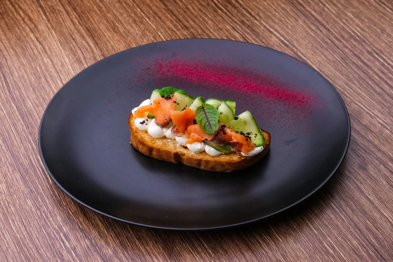Брускетта с творожным кремом, сыром «Дор Блю» и грушей