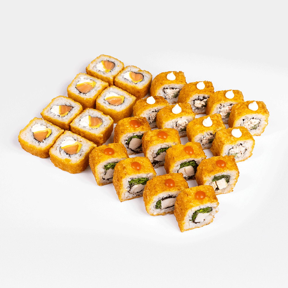 Дубль чиз (8 шт.), Тори темпура (8 шт.), Кани темпура (8 шт.)